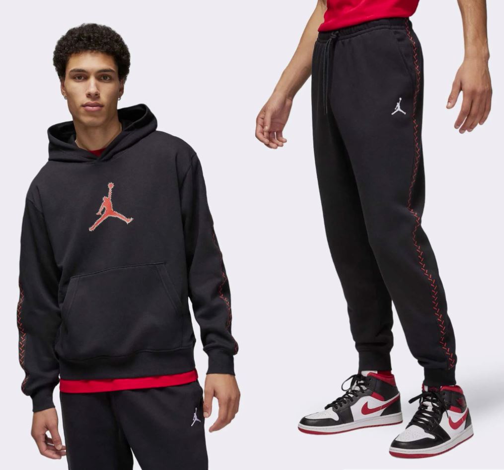 Мъжки екип Nike Air Jordan Flight MVP Fleece Tracksuit Black/Dune Red