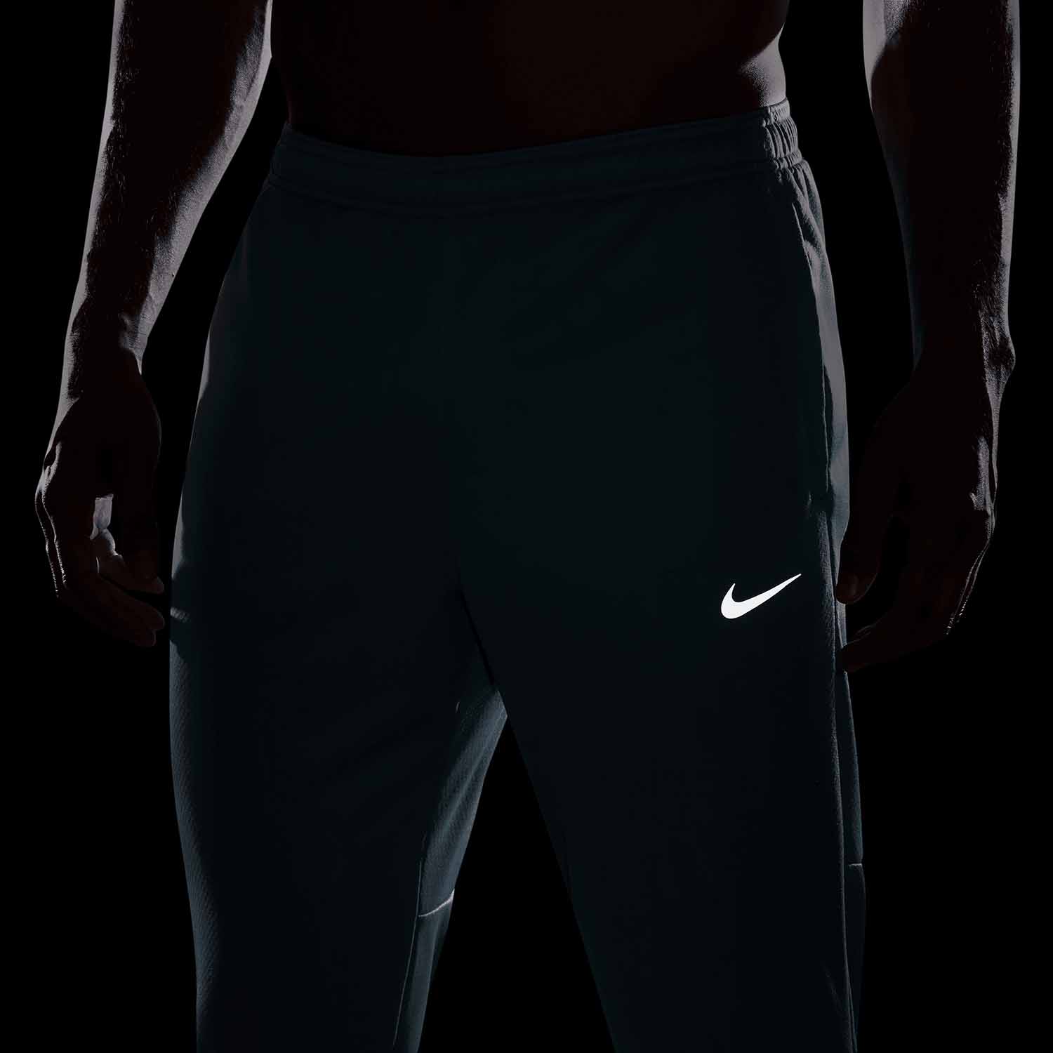 Топла и водоотблъскваща материя. Еластична талия с регулируем шнур. Два странични джоба без цип с вътрешна мрежеста материя. Джоб с цип на гърба и мрежеста вътрешна част. Закопчава се с цип по глезените за по-лесно прилягане. Вътрешна част с 3D текстура. Светлоотразителни детайли. Светлоотразително лого на Nike
