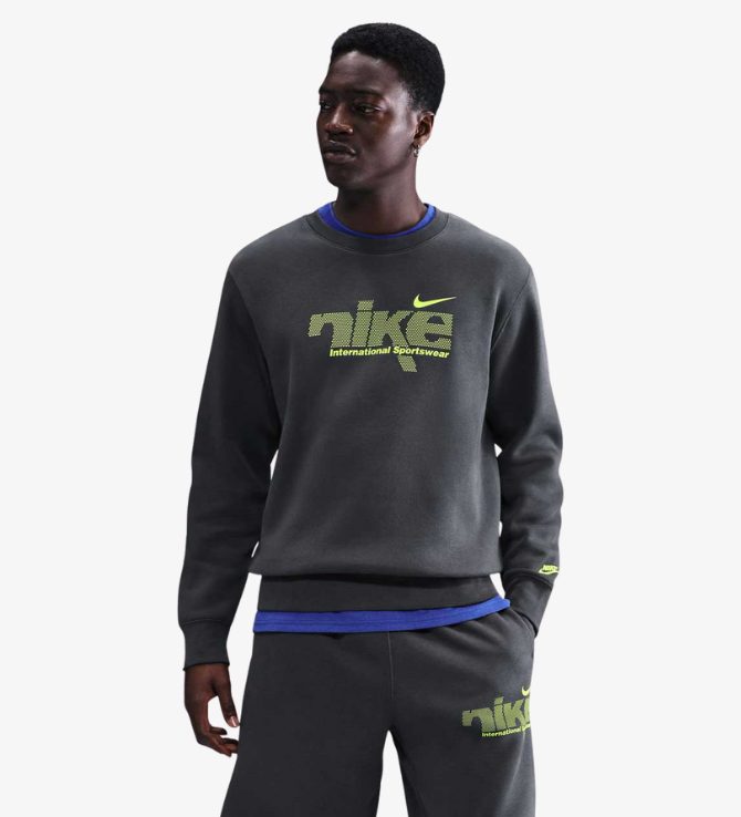Суитшърт Nike Sportswear Club Men’s Fleece Crew Anthracite/Volt