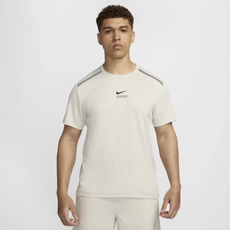 Мъжката тениска за бягане Nike Dri-FIT Miler ви помага да се чувствате комфортно в дишаща материя, която попива потта. Задният мрежест панел осигурява целенасочена вентилация.
